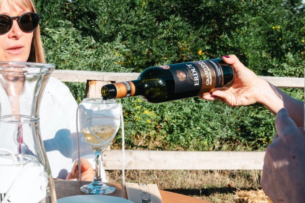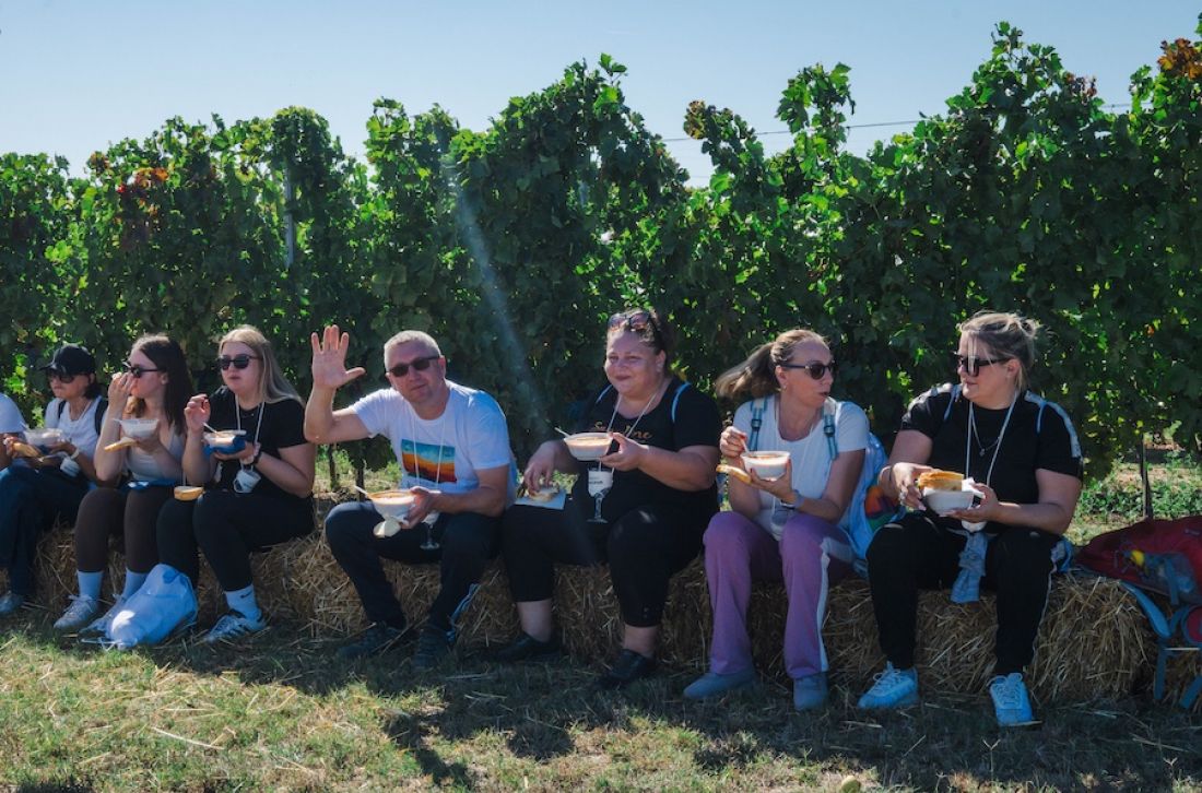 U vinogradu slijedi topli slavonski ručak – grah s kobasicom te kava i kolač, a po završetku šetnje, netom prije završnog glazbenog programa, poslužuje se i večera – tradicionalni perkelt od ribe. Cjelokupna gastronomska priča prati ideju ugodnog, cjelodnevnog boravka u prirodi, bez žurbe i s naglaskom na uživanje.
