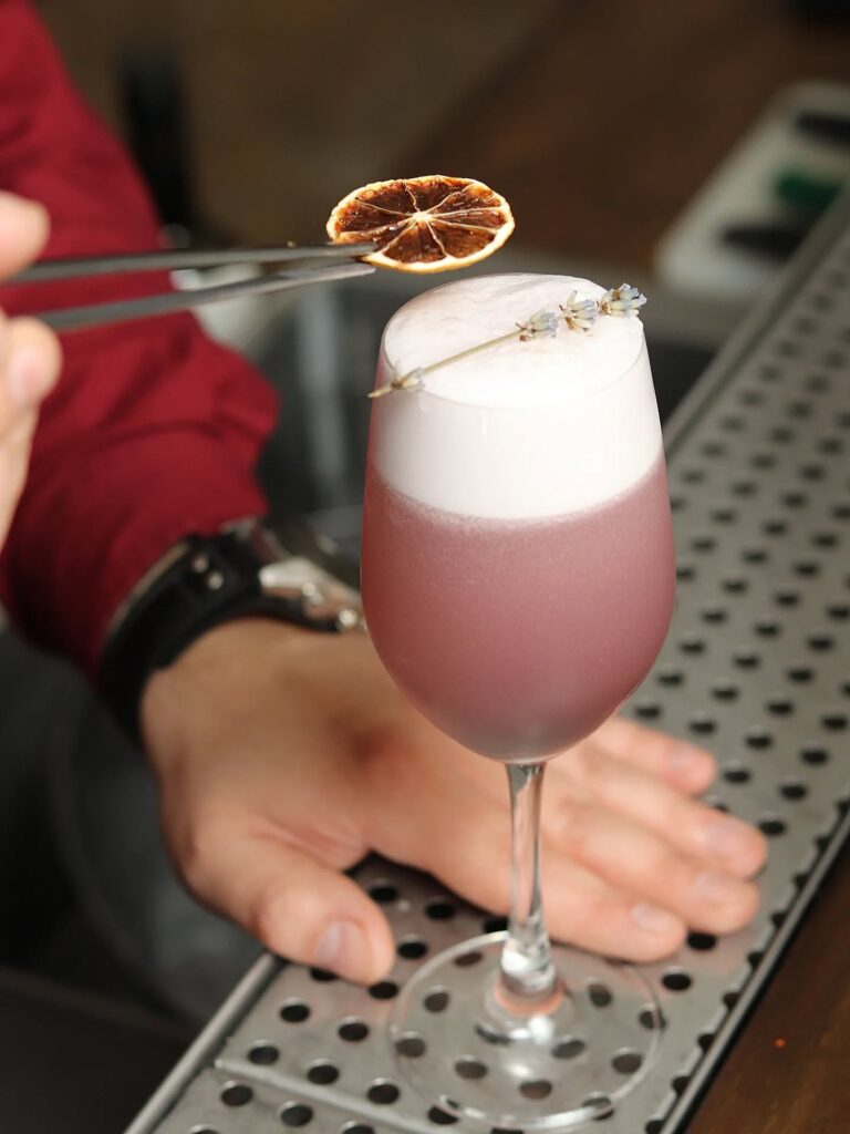 - garnish: dehydrated lemon and dried lavander